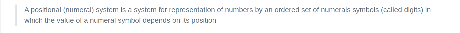 The definition is taken from a Quora question "What is a positional number system?"